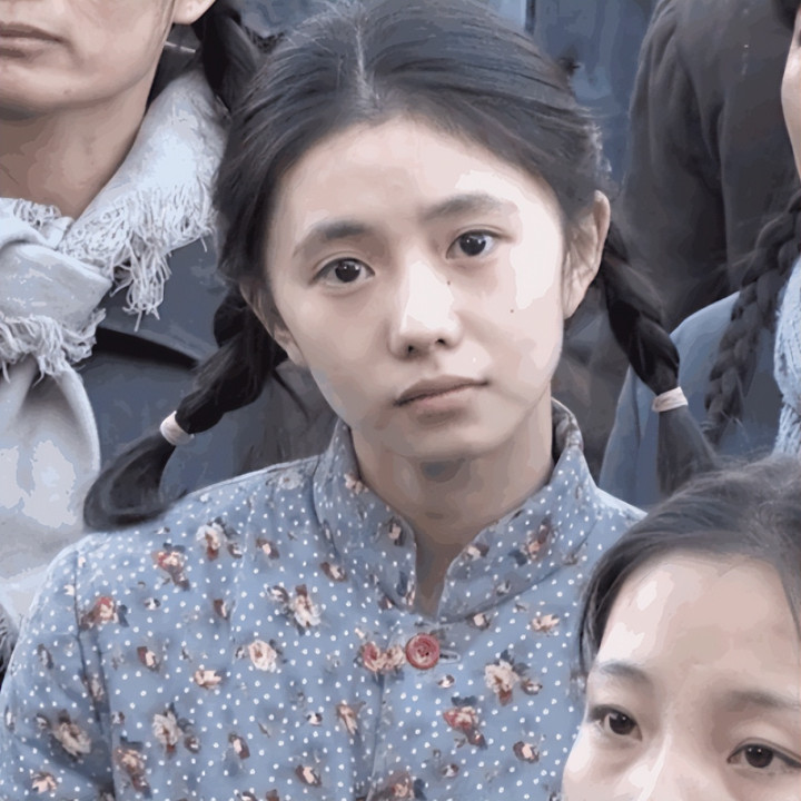 为了演好片中的流浪少女刘闺女,进组第一天她就被剪掉了长发,打扮得像个流浪儿,当时还偷偷哭了。